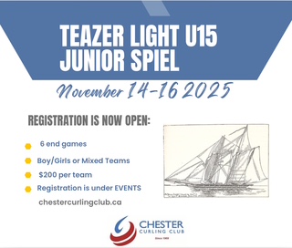 The Chester Curling Club is a non-profit, volunteer-run organization located on the South Shore of scenic Nova Scotia. We welcome all curlers- whether you're a beginner or a champion, young or old- you'll always find a warm, friendly and inviting place in our Club. We run Day, Ladies and Mens, Mixed and Stick Leagues throughout each week from October to March and our Junior programs have produced provincial, national and international champions !!!